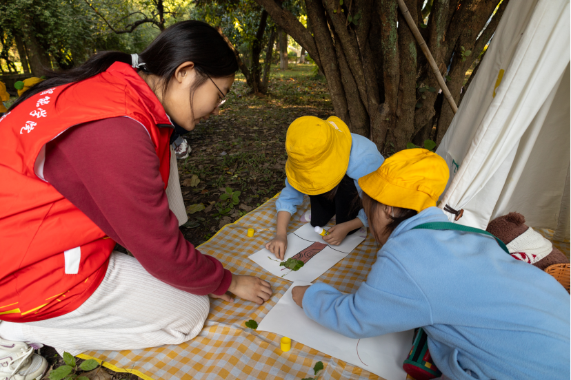 在一阵阵充满童稚的告别声中,小朋友们与志愿者们依依不舍地挥手作别,手中紧握着与哥哥姐姐们携手创作的落叶拓印作品,心中满载着这段纯真岁月留下的美好记忆,为这段经历画上了温馨的句号。